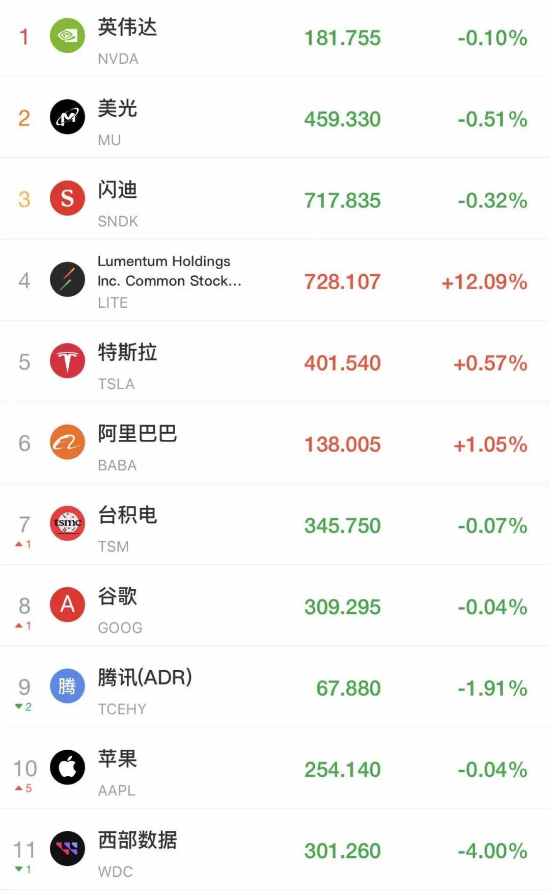 科技股普跌,西部数据跌4%, Meta、 微软、英伟达、苹果均下跌。石油股走高,埃克森美孚涨0.6%;贵金属概念走弱,科尔黛伦矿业跌4%,泛美白银跌逾6%。
